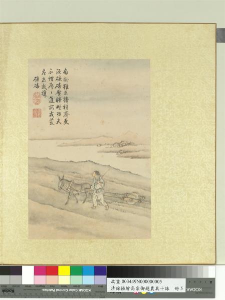 清徐揚繪高宗御題農具十詠 冊 騾驢碌碡 Levelling the Ground with a Stone Roller Drawn by a Donkey |