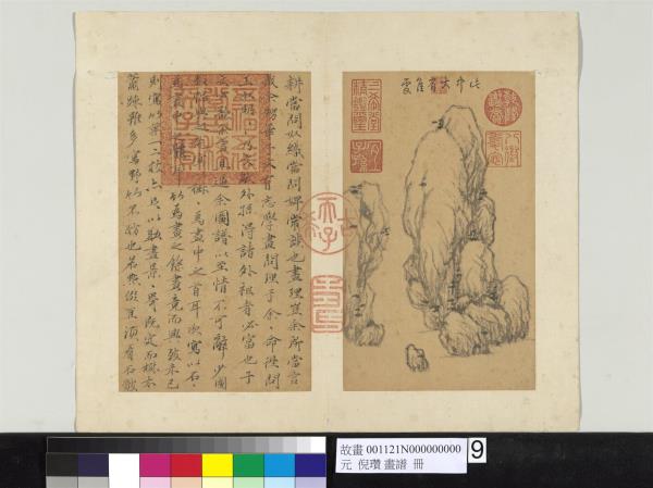 邱士華,〈元倪瓚畫譜 冊 兩山〉,收入邱士華主編《行篋隨行-乾隆南巡行李箱中的書畫》(臺北:國立故宮博物院,2017.03),頁130-137。
