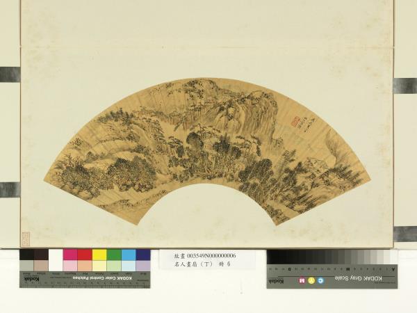 名人畫扇(丁) 冊 甯穮松巖山舍 Mountain Lodgings amidst the Pines and Cliffs |