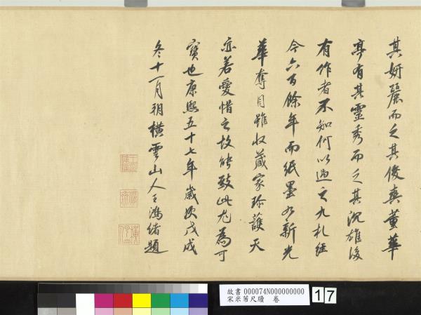 康熙五十七年(西元一七一八年)歲次戊戌冬十一月朔。橫雲山人王鴻緒題。 |