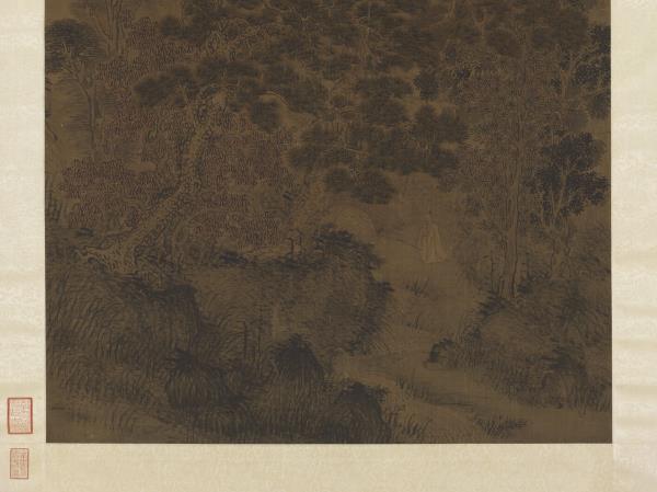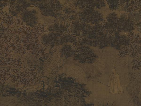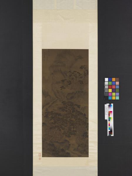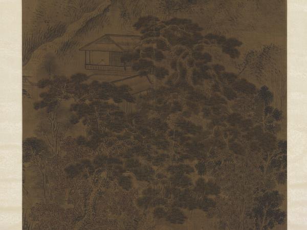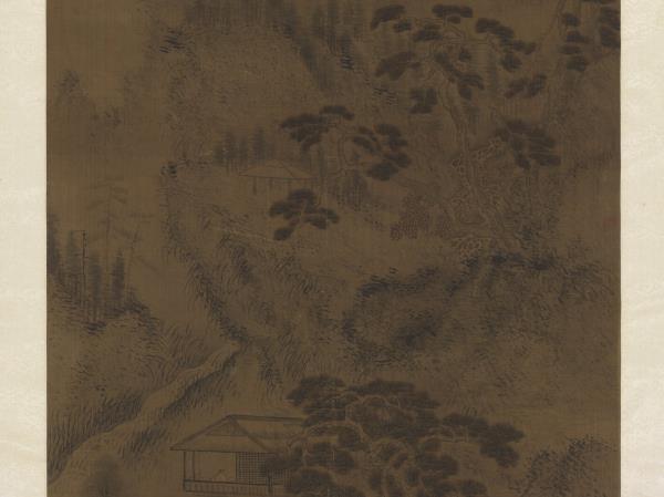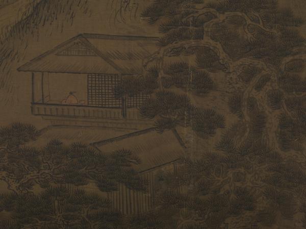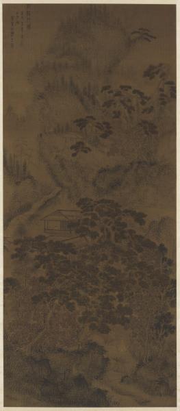 松陰草閣。至正五年(西元一三四五年)春三月畫。黃鶴山樵王蒙。 |