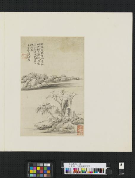 宋元集繪 冊 元倪瓚秋林遠山 Autumn Woodlands and Mountains in the Distance |