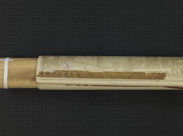 On a foreground bank by the water are old pines and withered trees with a background composition featuring a level distance, the scenery desolate and expansive. Though no artist’s seal or signature is here, an inscription in the upper right attributes it to Li Cheng (916-967). Descended from the Tang imperial clan, Li originally lived in Chang’an, Shaanxi, moving in the late Tang to Qingzhou, Shandong. Unbridled, he took to wine and poetry, excelling at landscape painting but his works already scarce by the late Northern Song. Records say his use of brush and ink is sublime, excelling at a “remote atmosphere and misty forests of pure spaciousness.” This work appears to be a Ming imitation that intentionally follows his wintry forests.(20120103)