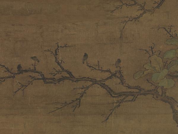 In this work are 7 riders on a horseback outing. The figure in the middle appears frontal and wears clothing different from the others, suggesting he may be the host of the trip. Two figures are in the lead, and others behind carry such items as a sword, polo club, lute, and wine. The composition of trees and forms in the background is similar to another work in the Museum collection, “Gibbons and Horses” attributed to Han Gan (fl. 8th c.), and may have come from the same original. This work has no seal or signature of the artist and has an old attribution to a Tang artist. The method of frontal rendering for the host in the center is similar to imperial portrayals in the middle Ming (1368-1644), suggesting it may have been done by a Ming court artist.(20100710)