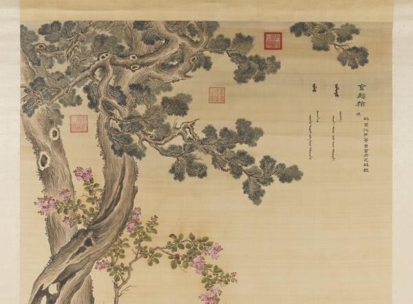 Lang Shih-ning (1688-1766), born Giuseppe Castiglione, was a native of Milan, Italy. When he entered the Catholic priesthood at 19, he already excelled at painting and architecture. At 27 he journeyed to China as a missionary and was called to the Imperial Court to serve the Emperor. The painter is especially well-known for his rendering of figures, flowers, birds and larger-than-life size horses and dogs.