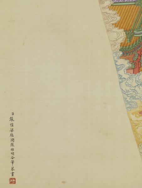 作者款識 張愷 印記 expand_more 本幅 臣張愷、梁德潤、張維明合筆恭畫。 楷書