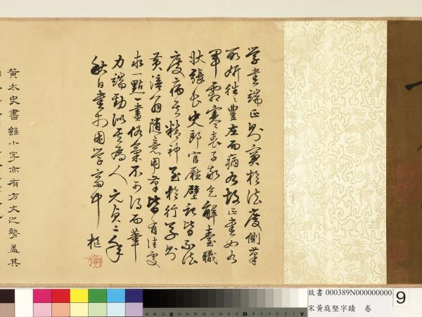 學書端正則窘於法度。側筆取妍往往豊左而病右。故正書如右軍霜寒表。子敬乞解臺職狀。張長史郎官廳壁記。皆不法度。病其精神。至於行草則黃涪翁。隨意用筆皆有佳處。求一點一畫俗氣不可得。而筆力端勁。似其為人。元貞二年秋日畫於困學齋中。樞。 |