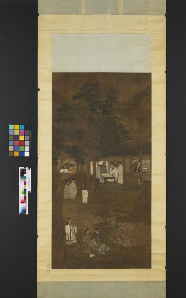 洛下耆英不序官。賦詩飲酒共游盤。功名就矣休重話。時節迅哉且盡歡。要亦未輸唐格調。因之猶見宋衣官。祝釐昨歲人增數。翻笑圖中欲匹難。壬午仲春御題。 |