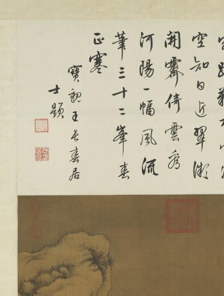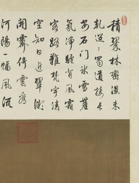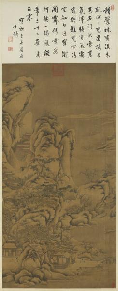 積翠林巒濕未乾。迢迢蜀道接長安。石門冰雪塵氛淨。驢背風霜客路難。梵宇凌空知日近。翠微開霽倚雲看。河陽一幅風流筆。三十二峰春正寒。寶親王長春居士題。 |