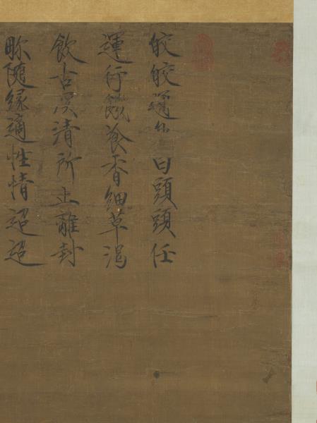 | 作者款識 | 趙佶 印記 | 本幅 | 皎皎通身白。頭頭任運行。饑湌香細草。渴飲古溪清。所止離封畛。隨緣適性情。迢迢平等路。安穩步無生。 | 楷書 | |||||||||||