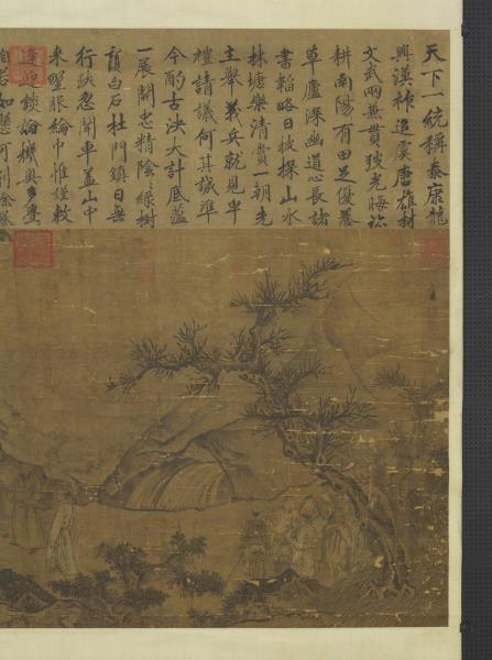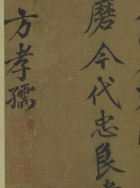 天下一統稱泰康。龍興漢祚追虞唐。雄材文武兩兼貫。弢光晦跡耕南陽。(脫二字)有田足優養。草廬深幽道心長。諸書韜略日披探。山水林塘樂清賞。一朝先主舉義兵。就見準禮請議(請議二字點去)何其誠。準今酌古決大計。底蘊一展開忠精。陰陰綠樹覆白石。杜門鎮日無行跡。忽聞車蓋山中來。野服綸巾惟謹敕。逢迎談論機奧多。亹亹自若如懸河。削除暴亂定寰宇。運籌帷幄趨巒坡。竹扉山靜晨光早。山僮閑把蒼苔掃。金章紫綬織五花。紅纓白馬嘶芳草。鴻基定鼎開太平。不毛深入邊塵清。統麾鐵騎千百萬。分符剖塲沾恩榮。前朝事業今何有。大明日月天同久。光昭萬古良不磨。今代忠良盡勛舊。方孝孺。 |