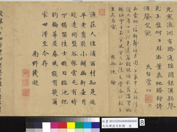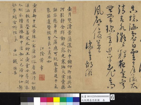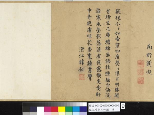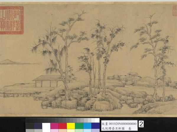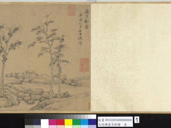 壺月軒圖。辛亥(西元一三七一年)八月四日倪瓚。 |