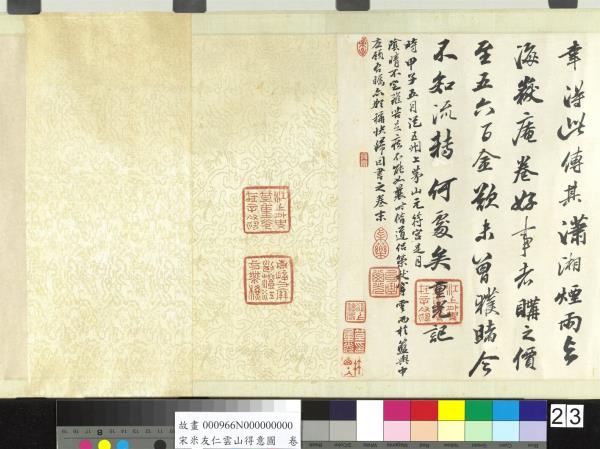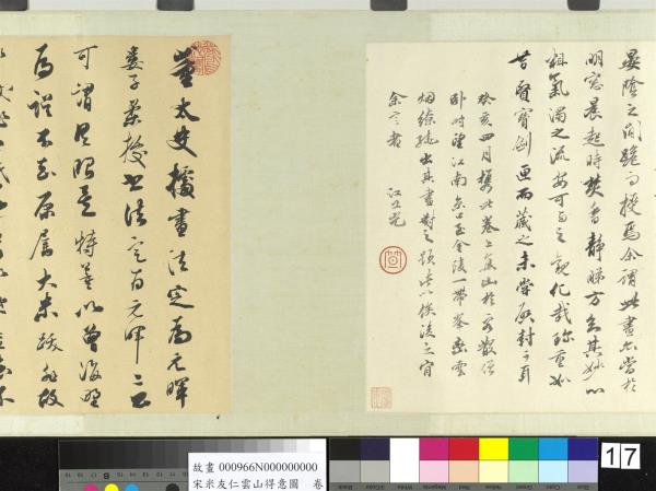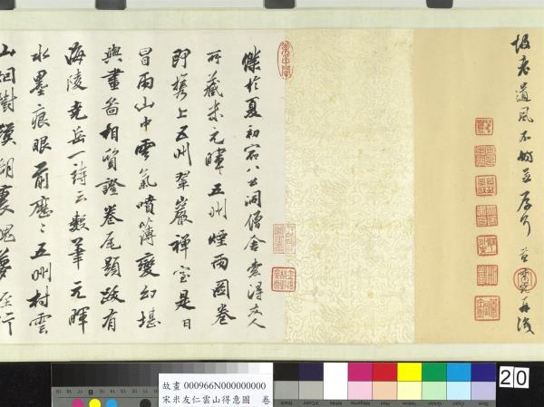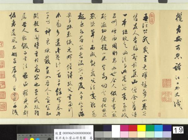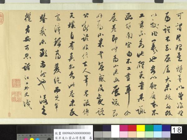 1.〈宋米友仁雲山得意圖〉,收入國立故宮博物院編輯委員會編,《山水畫墨法特展圖錄》(臺北:國立故宮博物院,1987年七月初版),頁60。