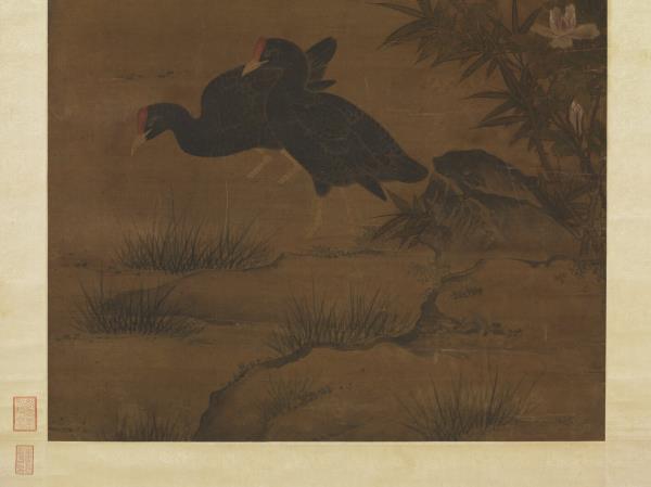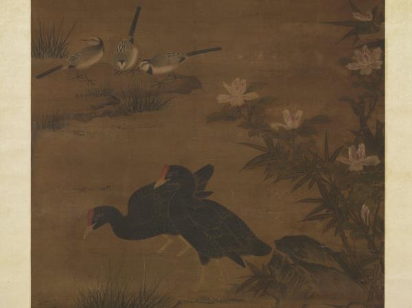Huang Ch'uan specialized in painting flowers and birds, especially the rare birds and exotic plants kept in the palace. When painting, he would first lay out the composition with fine ink outlines and then build up the colors in successive layers. His paintings are most notable for their use of bright, beautiful colors which create a sense of gorgeousness and grandeur.