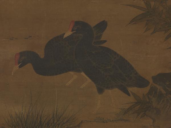Huang Ch'uan (style name Yao-shu) came from Ch'eng-tu in Szechuan. He was already an excellent painter as a child but his art progressed even further as an adult when he studied the works of his contemporaries Tiao Kuang-yin, T'eng Ch'ang-yu, Li Sheng, Sun Wei, and Hsueh Chi. Nonetheless, he was able to cast aside the influence of former painters to establish his own style. At the age of 16 he was already serving as Painter-in-Attendance in the palace under Emperor Hou-chu (r. 918-925) of the Former Shu.
