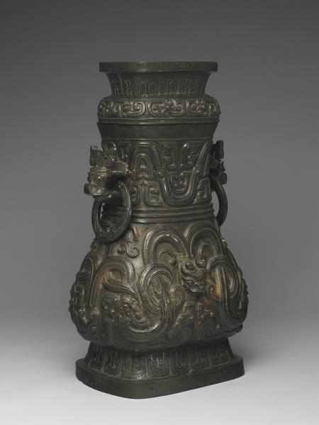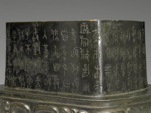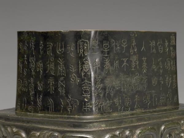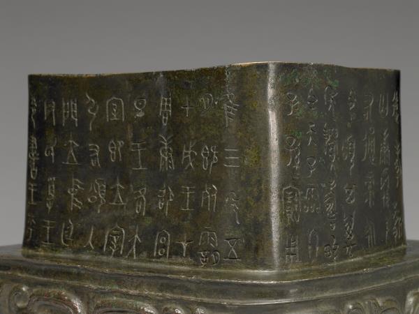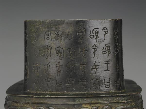 | 說明 | 頸飾環帶紋,腹部飾交龍紋,圈足與蓋鈕飾並列式垂鱗紋,蓋沿飾獸目交連紋。雙耳獸首,以二次鑄造法嵌套一圓環。全器體量巨大,紋飾層層分布,華麗又富動感。壺蓋及器身內有相同的一百五十二字銘文,記載周王冊封頌的儀式,文風典雅,文字秀麗。銘文內容完整記錄冊命儀式的進行細節,先敘明儀式時間、地點及官員引導的步驟,再記述周王對頌的工作任命及車服賞賜,可印證並增補西周晚期史實。 |