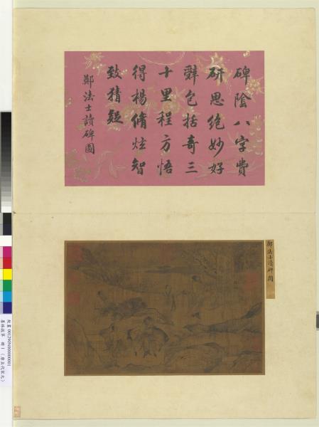 〈墨林拔萃 冊 唐鄭法士讀碑圖〉,收入李玉珉主編《故宮書畫圖錄(卅一)》(臺北:國立故宮博物院,2012.12),頁42-47。