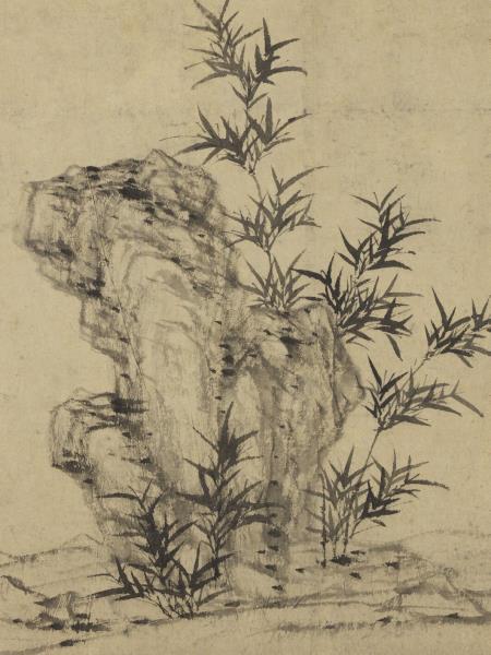 Several stalks of new bamboo grow by a single rock, their leaves designed with rhythmic clarity. Ni Tsan's bamboo reveals the extent of his brush-strength, and thus suggests his skill in calligraphy. The rock is formed with rubbed texture strokes and dots that skillfully describe its three-dimensionality. The painting's composition is pure and sparse, and the concept marvelously spontaneous and unforced.