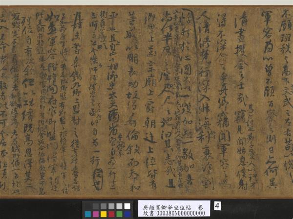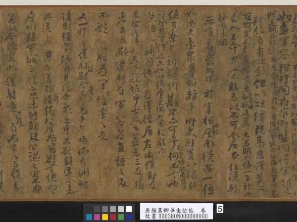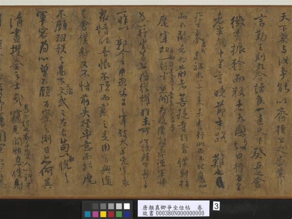 十一月 日。金紫光祿大夫。檢校。刑部尚書。上柱國。魯郡開國公。顏真卿。謹寓(旁書奉字)書于右僕射。定襄郡王。郭公閤下。蓋太上有立德。其次有立功。是之謂不朽。抑又聞之。端揆者百寮之師長。諸侯王者人臣之極地。今僕射挺不朽之功業。當人臣之極地。豈不以才為世出。功冠一時。挫思明跋扈之師。抗逈紇無厭之請。(二字圈去)故得身畫凌煙之閣。名藏太室之廷。不其吁足畏也。然美則美矣。然而終之始難。故曰。滿而不溢。所以長守富也。高而不危。所以長守貴也。可不儆懼乎。書曰。爾唯弗矜。天下莫與汝爭功。爾唯不伐。天下莫與汝爭能。以齊桓公之盛業。片言勤王。則九合諸侯。一匡天下。葵丘之會。微有振矜。而叛者九國。故曰。行百里者。半九十里。言晚節末路之難也。(一字圈去)從古至今。眾我高祖太宗已來。未有行此而不理。廢此而不亂者也。 前者菩提寺行香。僕射指麾。宰相與兩省臺省已下常參官。並為一行坐。魚開府及僕射率諸軍將。為一行坐。若一時從權。猶未可。何況積習。更行之乎。一昨以郭令公。父子之軍。破犬羊兇逆之眾。眾情欣喜。恨不頂而戴之。是用有興道之會。僕射又不悟前失。徑率意而指麾。不顧班秩之高下。不論文武之左右。苟以取悅軍容為心。曾不顧百寮之側目。亦何異清晝攫金之士哉。甚非謂也。君子愛人以禮。不竊見聞姑息。僕射得不深念之乎。真卿竊聞。軍容之為人。清修梵行。深入佛海。況乎收東京。有殄賊之業。守陝城有戴天之功。朝野之人。所共貴仰。豈獨有分於僕射哉。加以利衰塗割。恬然於心。固不以一毀加恕。一敬加喜。尚何半席之座。咫尺之地。能汨其志哉。且鄉里上齒。宗廟上爵。朝廷上位。皆有等威。以明長幼。故得彝倫敘。而天下和平也。且上自宰相。御史大夫。兩省五品以上供奉官。自為一行。十二衛大將軍次之。三師三公令僕。少師保傅。尚書左右丞侍郎。自為一行。(八字圈去)九卿三監對之。從古以然。未嘗參錯。至如節度軍將。各有本班。卿監有卿監之班。將軍有將軍之位。縱是開府特進。並是勳官。用蔭即有高卑。會讌合依倫敘。豈可裂冠毀冕。反易彝倫。貴者為卑所卻欲凌。尊者為賊所偪。一至於此。振古未聞。如魚軍容。階雖開府。官即監門將軍。朝廷列位。自有次敘。但以功績既高。恩澤莫二。出入王命。眾人不敢為比。不可令居本位。須別示有尊崇。只可於宰相師保座南。橫安一位。如御史臺眾尊。知雜事御史。別置一搨。使百寮共得瞻仰。不亦可乎。聖皇時。開府。高力士。承恩宣傳。亦只如此。橫座亦不聞別有禮數。亦何必令他失位。如李輔國。倚承恩澤。徑居左右僕射。及三公之上。令天下疑怪乎。古人云。益者三友。損者三友。願僕射與軍容。為直諒之友。不願僕射為軍容佞柔之友。又一昨。裴僕射。誤欲令左右丞句當尚書。當時輒有酬對。僕射恃貴。張目見尤。介眾之中。不欲顯過。今者興道之會。還爾遂非。再徑猲八座尚書。欲令便向下座。州縣軍城之禮。亦恐未然。朝廷公讌之宜。不應若此。今既若此。僕射意只應以為尚書之與僕射。為州佐之與縣令乎。若以尚書同於縣令。則僕射見尚書令。得如上佐事刺史乎。益不然矣。今既三廳齊列。足明不同刺史矣。且尚書令與僕射。同是二品。只校上下之階。六曹尚書。並正三品。又非隔品致敬之類。尚書之事僕射。禮數未敢有失。僕射之顧尚書。何乃欲同卑吏。又據宋書百官志。八座同是第三品。隋及國家。始升別作二品(五字圈去)。高自標致。誠則尊崇。向下擠排。無乃傷甚。況再於公堂。猲咄常伯(二字圈去)。當為令公初到。不欲紛披。僶俛就命。亦非理屈。朝廷紀綱。須共存立。過爾墮壞。亦恐及身。明天子忽震電含怒。責斁彝倫之人。則僕射將何辭以對。 |