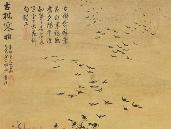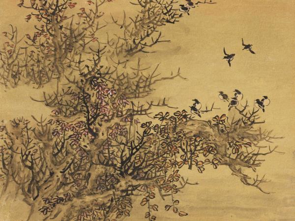 明藍瑛畫花鳥 冊 紅葉飛鴉 |