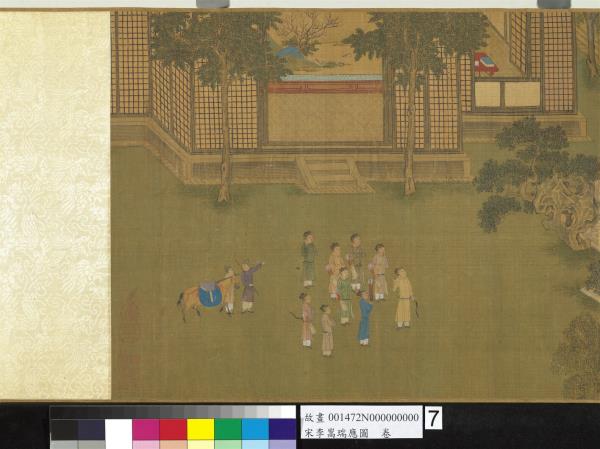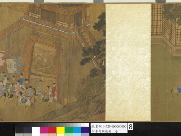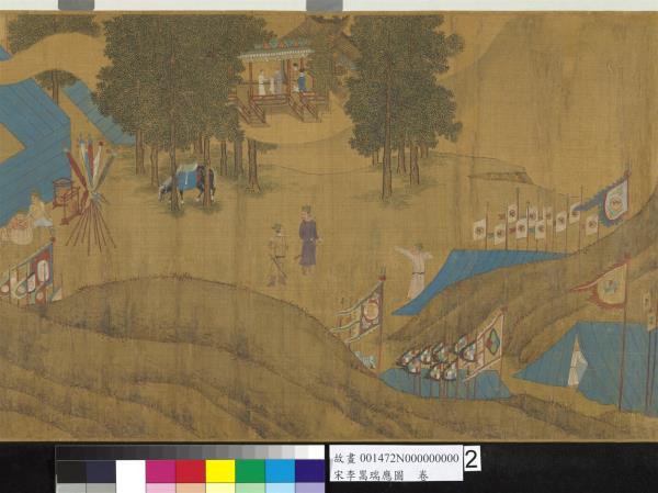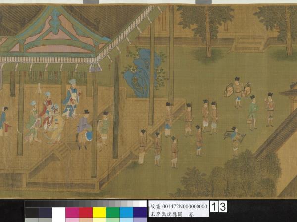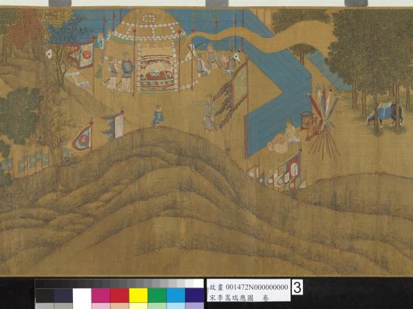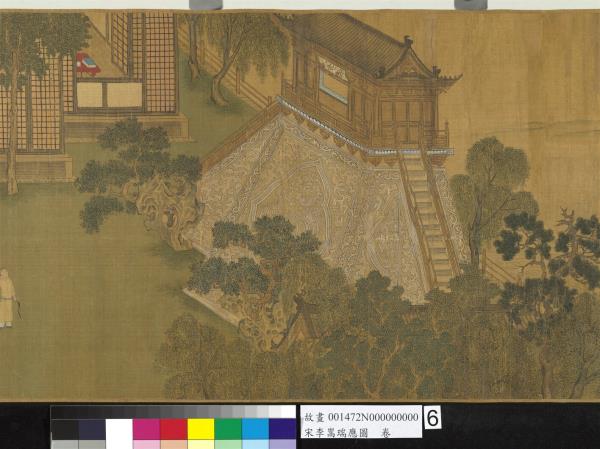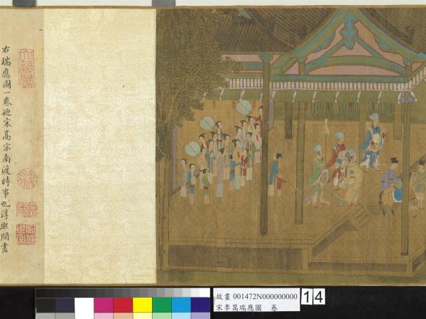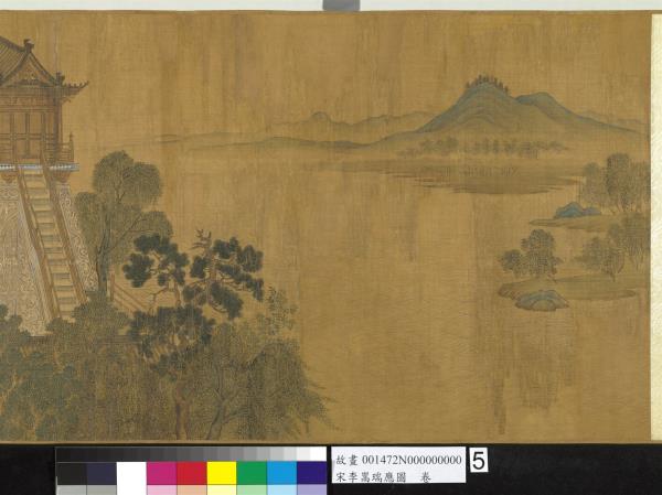1.林莉娜,〈(傳)宋李嵩瑞應圖(第三段)〉,收入林莉娜主編,《宮室樓閣之美 - 界畫特展》(臺北:國立故宮博物院,2000年初版),頁36-37、103-104。
