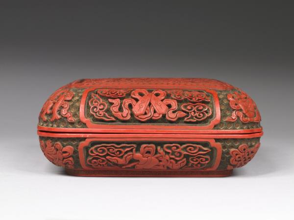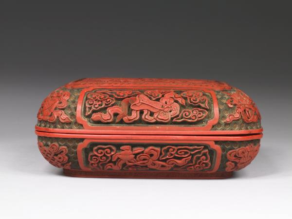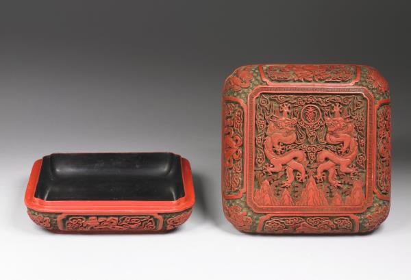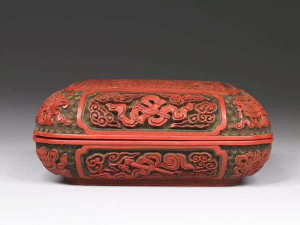 Carved-polychrome lacquer box with dragons offering longevity |
