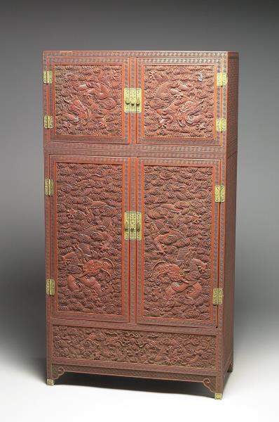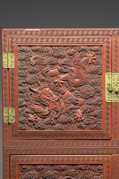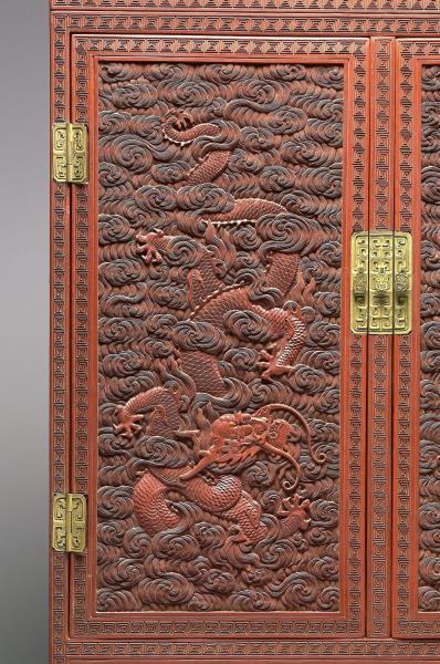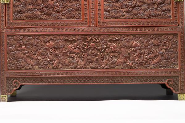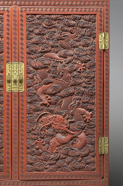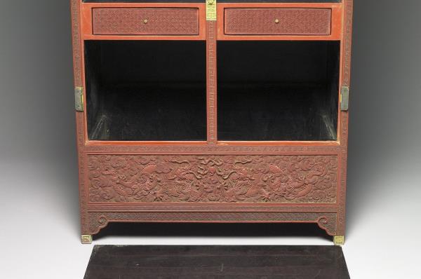 Carved-red lacquer cabinet with dragon-and-cloud pattern