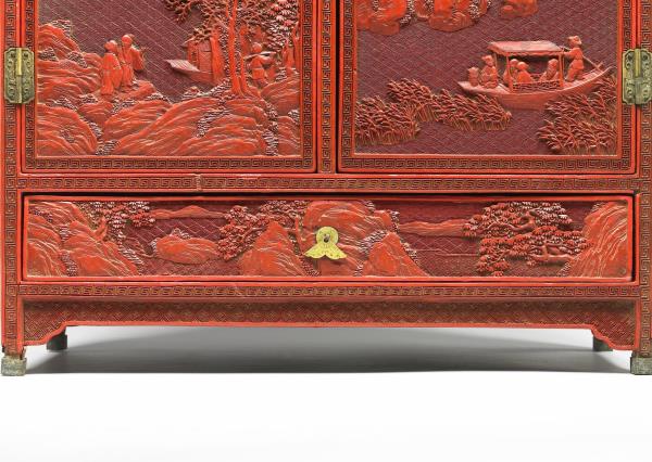Carved-red lacque cabinet with decoration of "The Red Cliff"