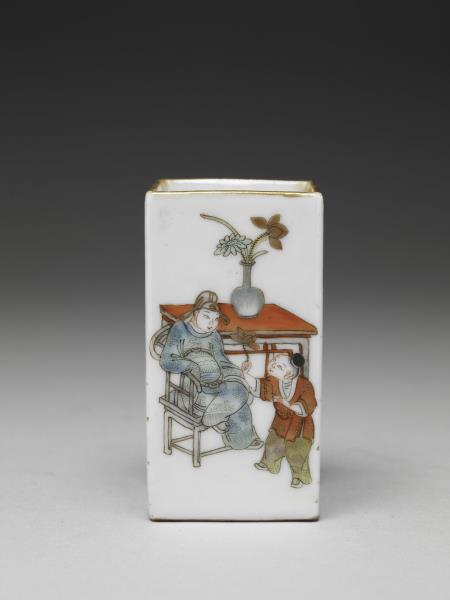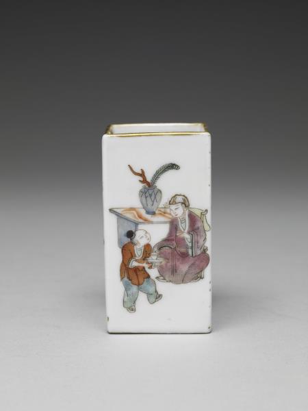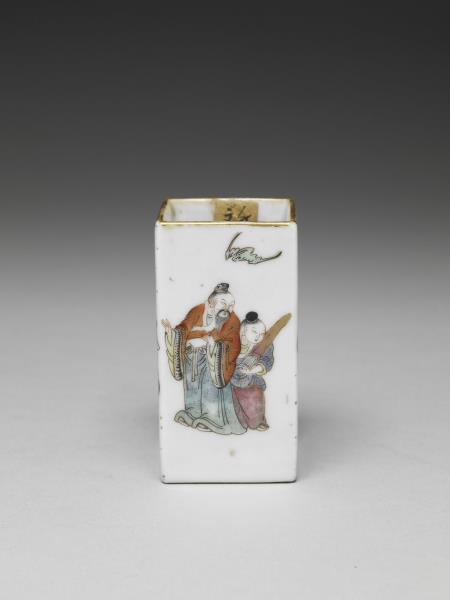 五彩人物圖四方筒