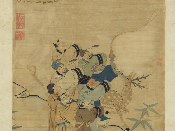 宋緙絲八仙拱壽 軸 Silk Tapestry (Kesi) of Eight Immortals Paying Homage to Longevity |