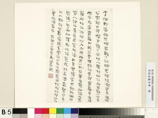 (北平故宮博物院古物館用箋)岳麓寺碑。四十四開。跋在內。因照相拆散。 |