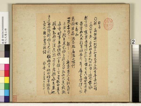明人尺牘上冊 冊 無款尺牘第二則 Letters by Ming Authors, Vol. 1: Letter (Two) |