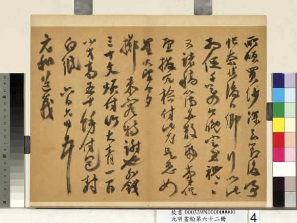 | 參考書目 | 〈元明書翰第六十二冊 冊 明祝允明尺牘之三〉,收入何炎泉主編《毫端萬象-祝允明書法特展》(臺北:國立故宮博物院,2013.01),頁84-95、368。 |