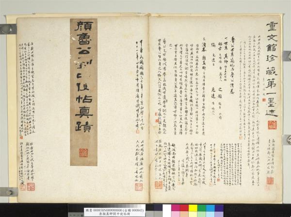 重文館珍藏第一墨迹。(隸書)。李煜瀛題。(行書)。 |
