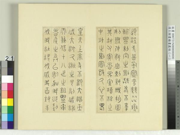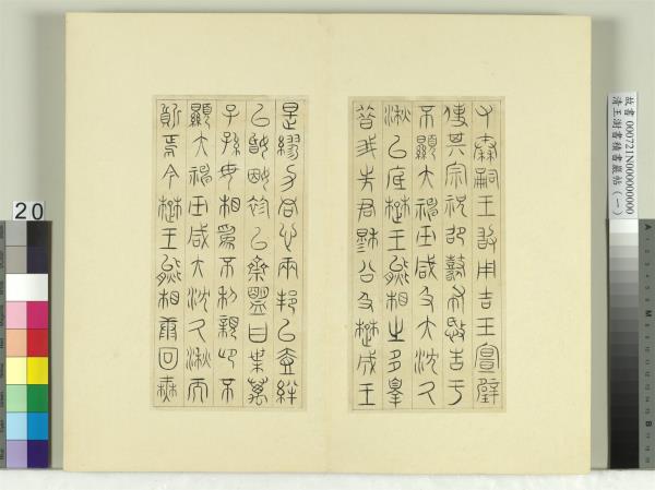 清王澍書積書巖帖(一) 冊 臨詛楚文 Modelbooks of the Accumulated Calligraphy Cliff (Jishuyan), Vol. 1: Copy of Prayers Cursing the Chu State |