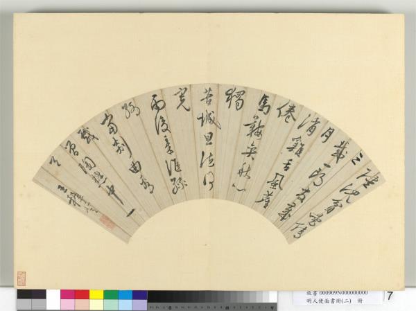 明人便面書冊(二) 冊 明王穉登草書五言律詩 Album of Folded Fans by Ming Calligraphers (Two): Five-Character Regulated Verse in Cursive Script by Wang Zhideng |