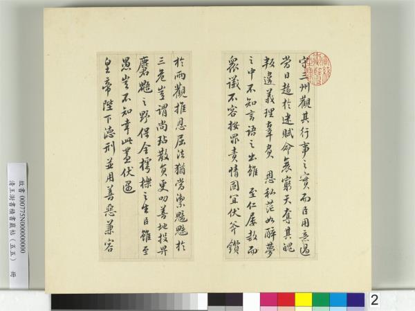 清王澍書積書巖帖(五十五) 冊 臨蘇軾黃州謝上表 Modelbooks of the Accumulated Calligraphy Cliff (Jishuyan), Vol.55: Copy of Su Shi's "Memorial on Thanking the Emperor Upon Arriving in Huangzhou" |