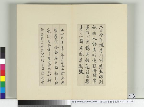 清王澍書積書巖帖(三十二) 冊 臨褚模蘭亭詩 Modelbooks of the Accumulated Calligraphy Cliff (Jishuyan), Vol.32: Copy of Chu Suiliang's Copy of "The Orchid Pavilion Poems" |