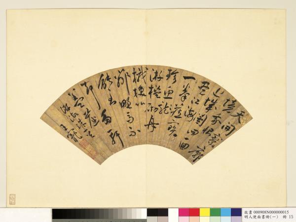 明人便面書冊(一) 冊 王寵行草書游海珠一首 Album of Folded Fans by Ming Calligraphers (One): Poem of Traveling to the Sea in Semi-Cursive Script by Wang Chong |