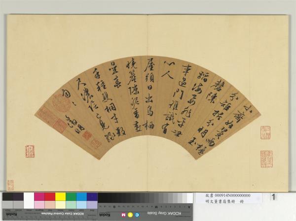 明文董書扇集冊 冊 文徵明行書七言律詩一首 Album of Collected Fans with Calligraphy by the Wen Family and Dong Qichang: Seven-Character Regulated Verse in Running Script by Wen Zhengming |