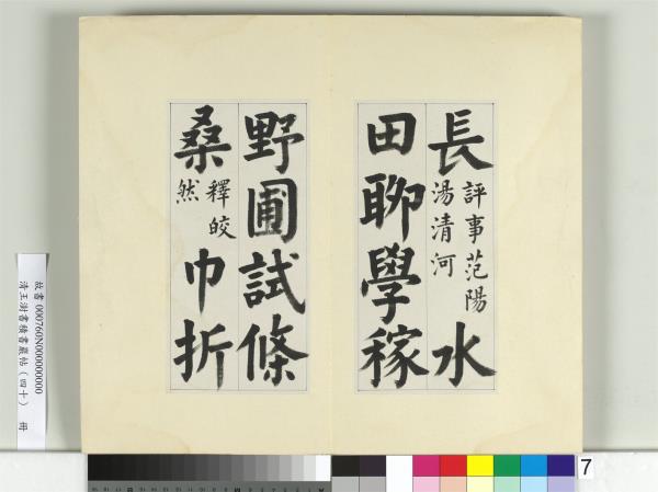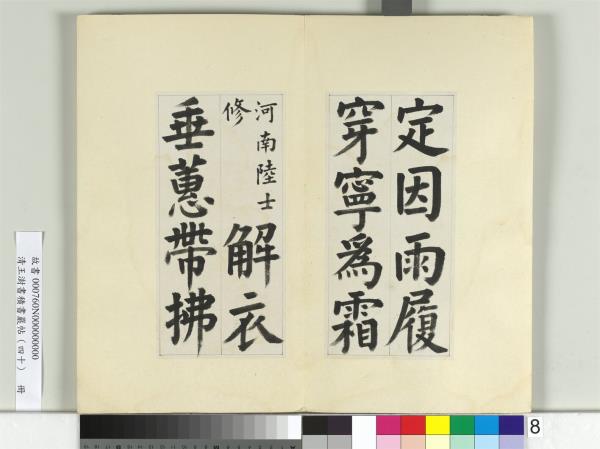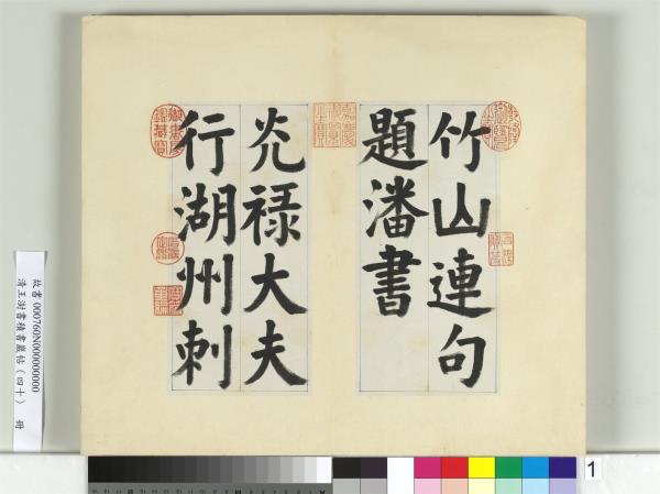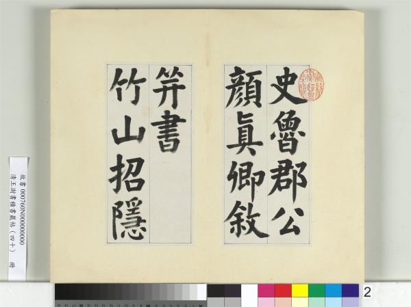 清王澍書積書巖帖(四十) 冊 臨顏真卿竹山連句 Modelbooks of the Accumulated Calligraphy Cliff (Jishuyan), Vol.40: Copy of Yan Zhenqing's “Joint Sentences at Zhushan” |