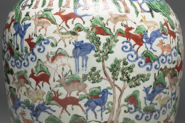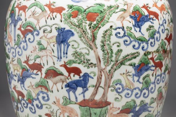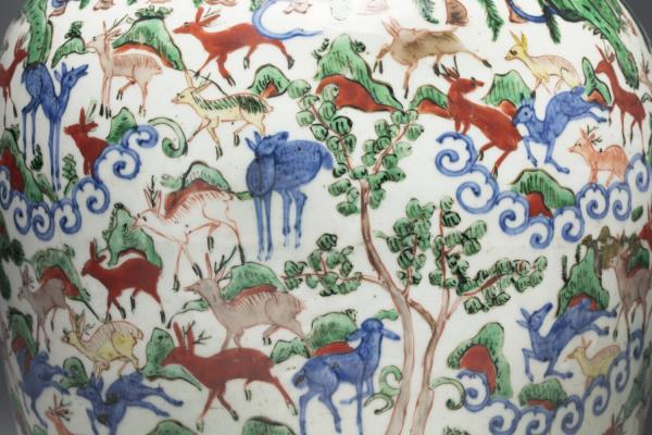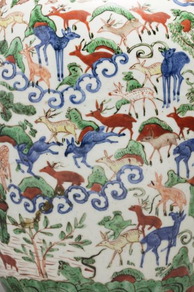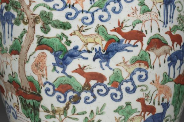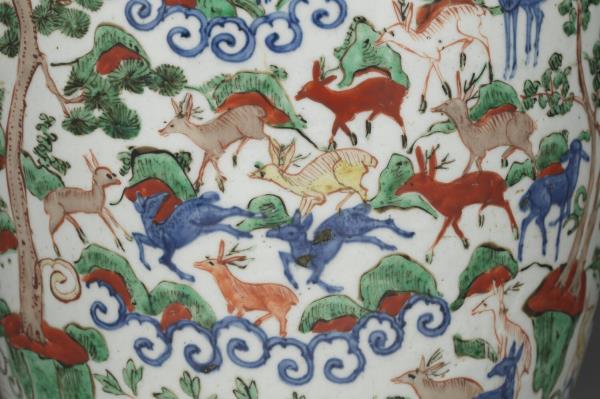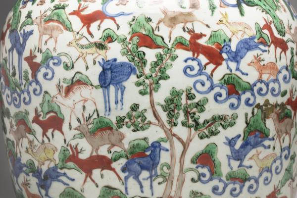 Vase with "One hundred deer" motif in wucai painted enamels |