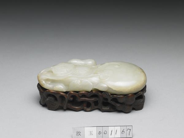 長10.0公分 寬5.1公分 最厚2.0公分;木座長10.1公分 寬5.4公分 高1.9公分;帶木座高3.5公分