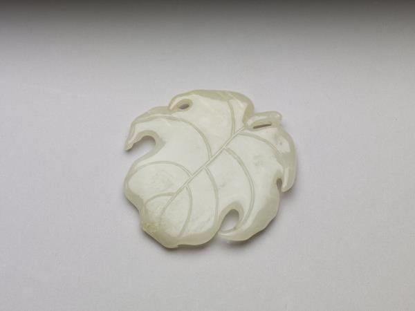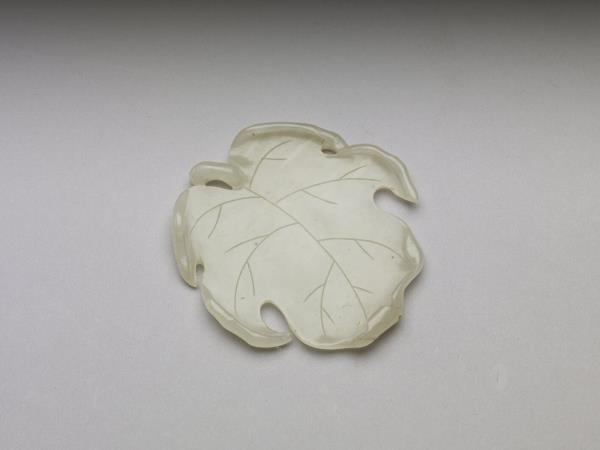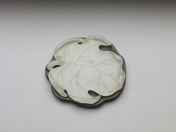 | 說明 | 玉質,雕成裂齒狀三出葉片,葉緣微捲起,器面寬平,中心微凸。筆覘的功能,是在筆毫含墨飽滿時,可在其上覘試,調節墨的乾濕,並勻整筆頭形狀。 |