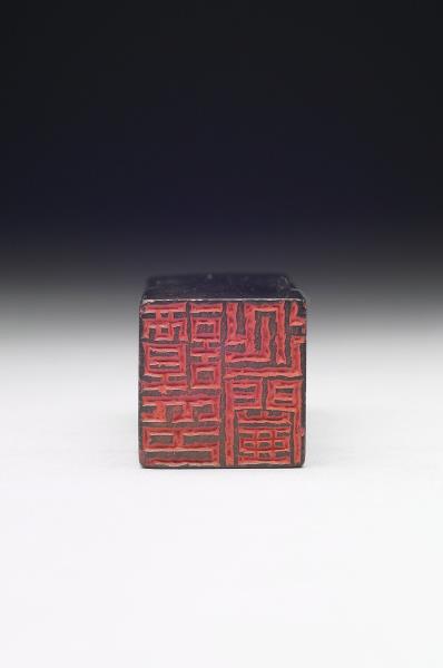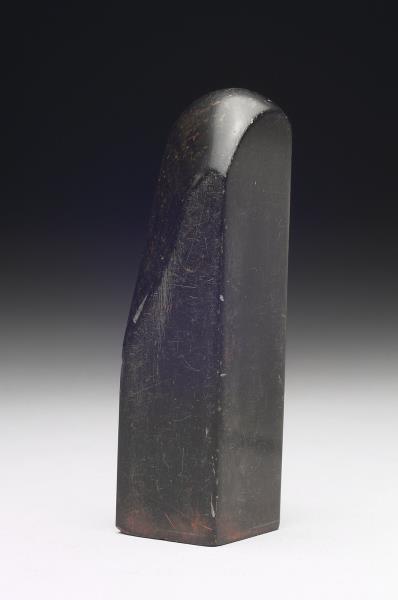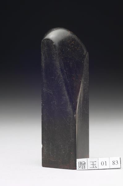 黑石章,黑色。長方體,頂作不規則形,印面正方。印面陰刻「譚延闓印」四字篆文,佈局工整。與「祖安不聿」黑石章(贈玉184)成一對。