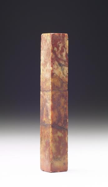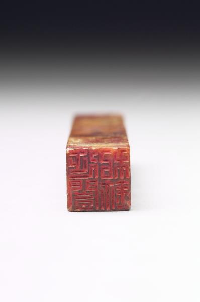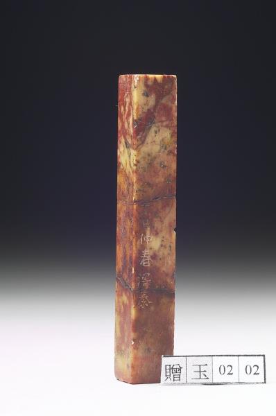 壽山石章,黃赭色夾雜,有裂痕。長方體,印面正方。印面陰刻四字篆文:「延闓私鈢」。邊款:「丁巳仲春。澤泰。」從邊款得知此印為印人黎澤泰所治。與十五方印(贈玉190-205)同儲於一木盒。
