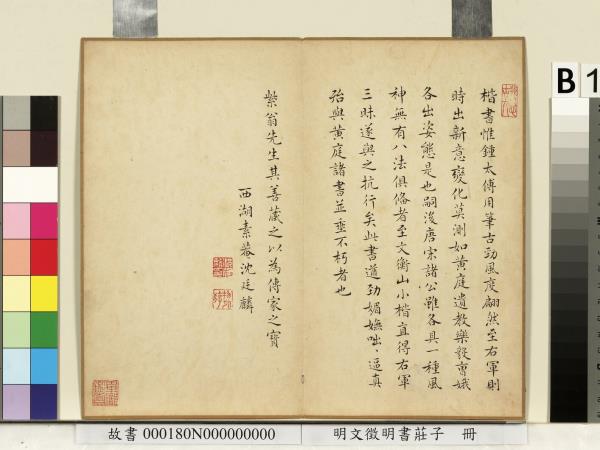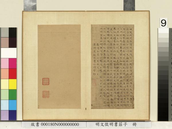 □□(文徵)明書(書字上疊書「十一」或「土」字)莊子。 |