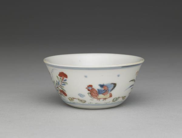 Cup withdoucai polychrome decoration of chicken in a garden |