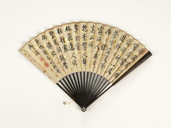 清乾隆御臨東坡壽星竹軒詩明李因畫花鳥 成扇 清乾隆御臨東坡壽星竹軒詩 Qianlong Emperor's Imperial Copy of Dongpo [Su Shi]'s Poem on the Bamboo Studio in the Shouxing (God of Longevity) Courtyard, and Li Yin's Bird-and-Flower Painting: Imperial Copy of Dongpo [Su Shi]'s Poem on the Bamboo Studio in the Shouxing (God of Longevity) Courtyard |