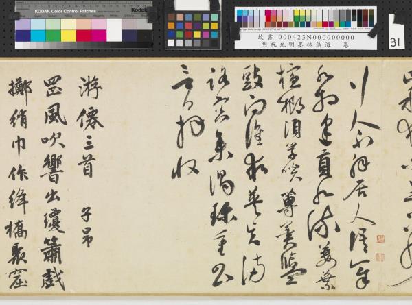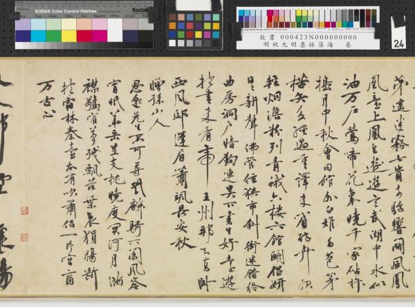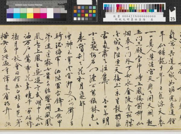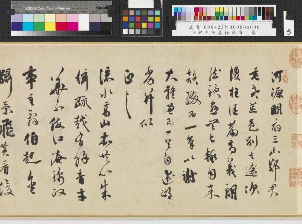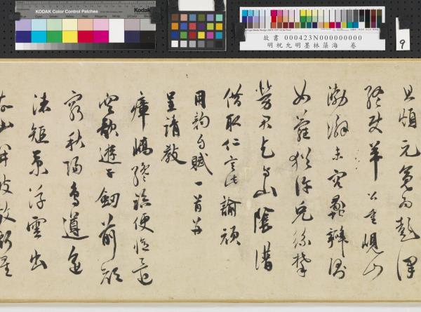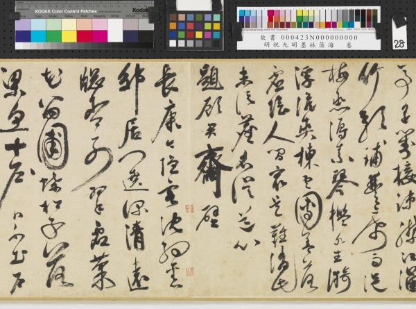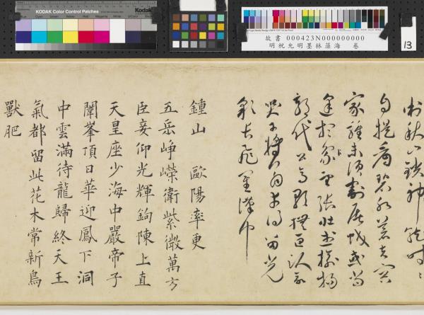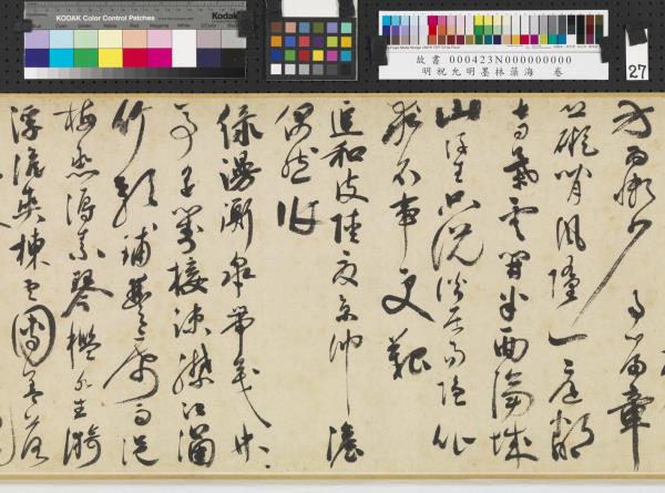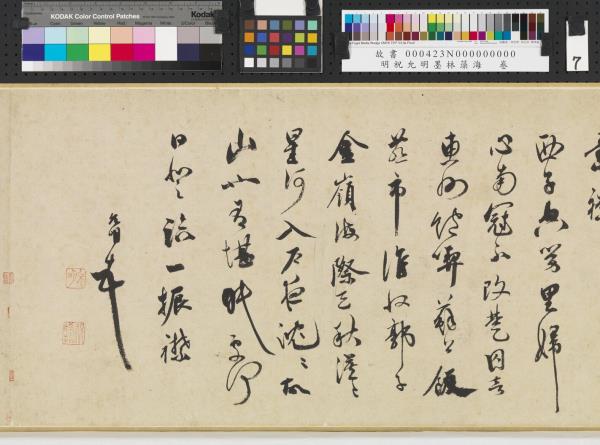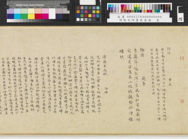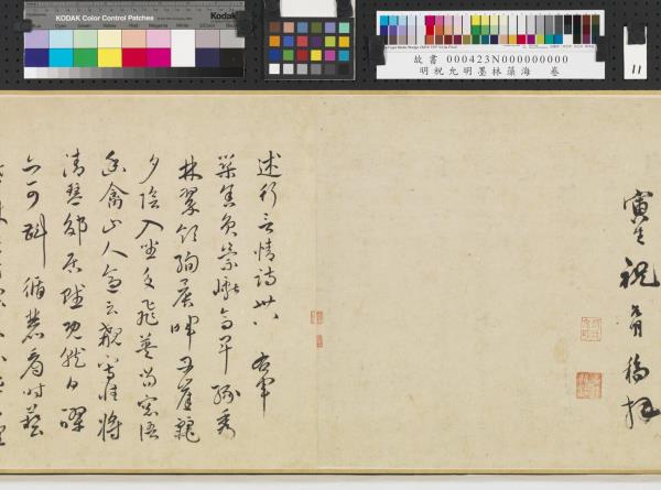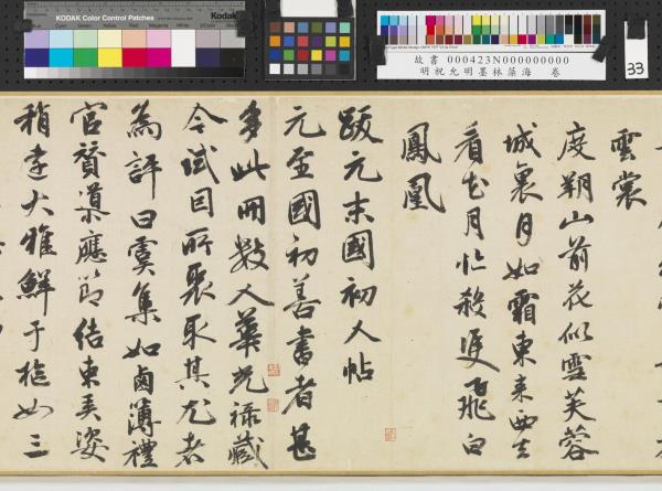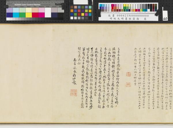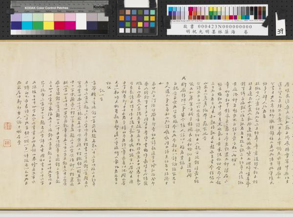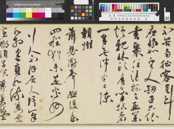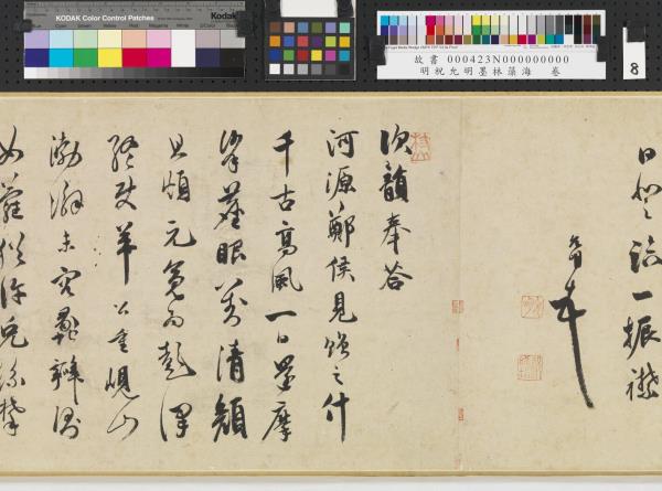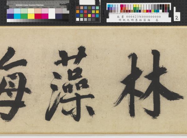 〈明祝允明墨林藻海 卷〉,收入何炎泉主編《毫端萬象-祝允明書法特展》(臺北:國立故宮博物院,2013.01),頁238-251、377。